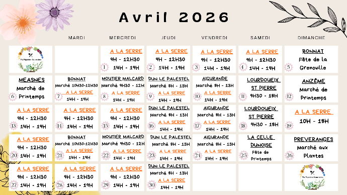 Installée sur la commune de Chéniers en Creuse, je vous propose mes plants produits sur place, dans le respect de la biodiversité & sans traitements.